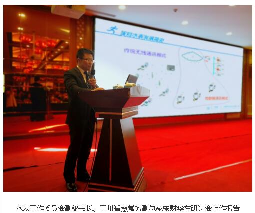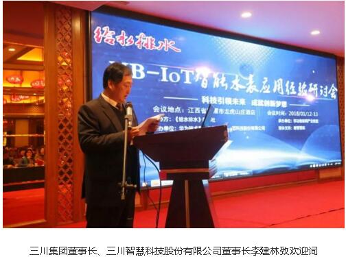 2018年1月13日,由《给水排水》杂志社主办、移动物联网产业联盟承办、华为技术有限公司和三川智慧科技股份有限公司协办、瞭望智库媒体支持的“NB-IoT智能水表应用经验研讨会”在江西鹰潭龙虎山庄会议中心顺利召开。出席会议的专家和领导主要有:北京自来水集团有限责任公司原副总工程师刘百德,华为技术有限公司上海研究所蜂窝物联网产品线副总经理刁志峰,中国城市规划设计研究院城镇水务发展研究所所长、中国城镇供水排水协会秘书处副主任周长青,同济大学教授李树平,鹰潭供水集团有限公司总工程师漆格卡,江西三川集团有限公司董事长、三川智慧科技股份有限公司董事长李建林,水表工作委员会副秘书长、三川智慧常务副总裁宋财华等。本次研讨会共有278人参会,含73家水司领导及19家运营商主要负责人。